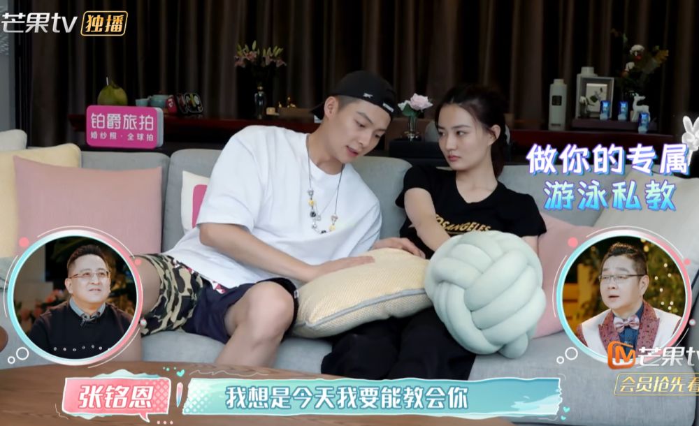 怕徐璐跟游泳教练学游泳的时候有肢体接触,毕竟在泳池了穿的都不多,肢体上的接触还是比较的尴尬,张铭恩就非常的聪明,一边带着女朋友出来玩。