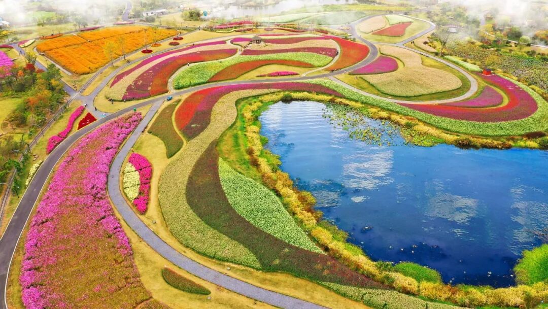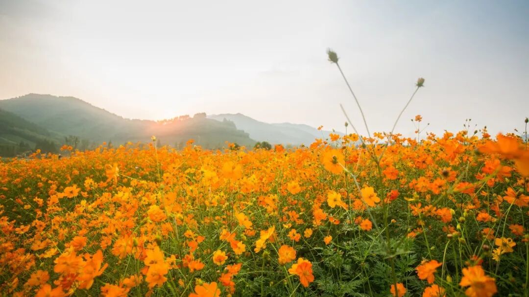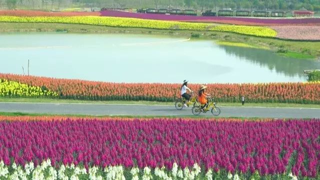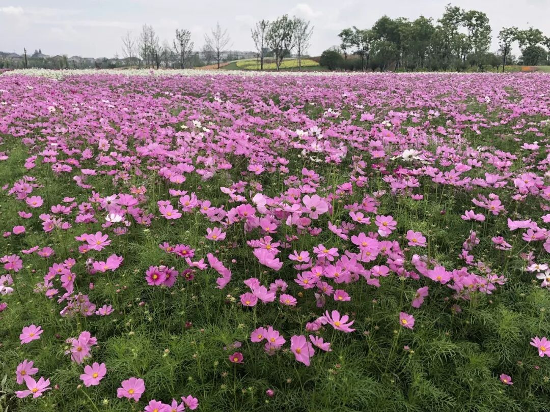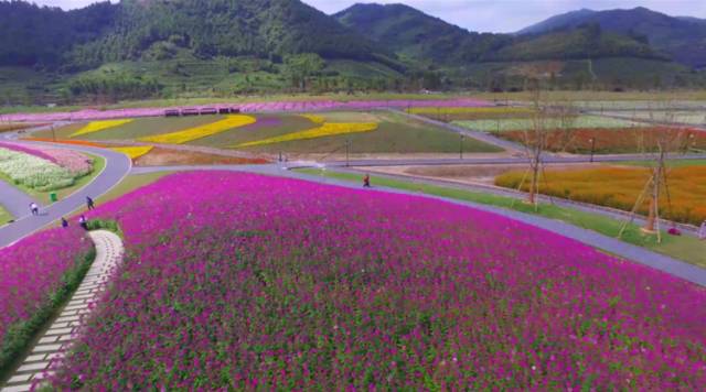 “径山花海·千花里”位于大径山国家乡村公园,南临漕雅线,东临龙皇大道,北临苕溪,千花里地势平坦、三面环山,成片的花海绽放着不同的色彩,园内种植了马鞭草、香莲花、波斯菊、金鱼草等多个品种。