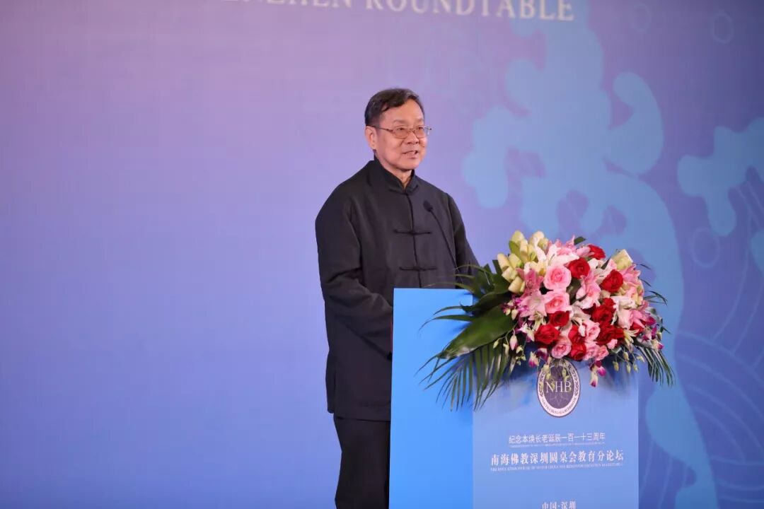 北京大学原校长周其凤院士发言,他认为国民教育与佛教较大差别在于教育的方式方法上,佛教注重的是实行和启发,它的教育理念、培养人的方法对于国民教育有非常好的参考价值。