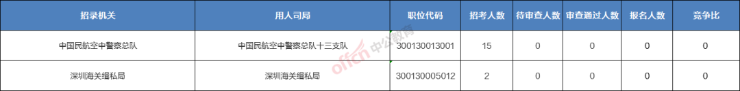 截止到20日16时,深圳的职位共有2个无人报考,占全部职位的2%。下面是无人报考职位一览表,小涛建议各位小伙伴们多关注一些较冷职位及关注每天职位的审核情况,避免激烈竞争,结合自身条件,找到属于自己的最佳职位。