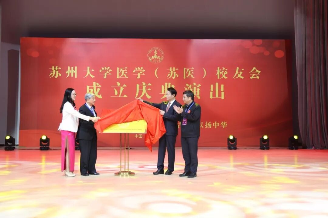 江涌书记、杜子威院长、詹启敏院士、郁霞秋会长共同为苏州大学医学(苏医)校友会揭牌。