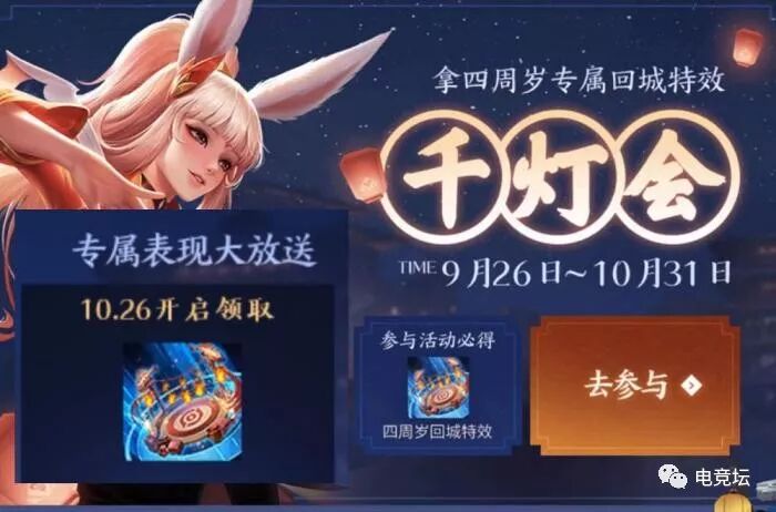 第一个活动,26号当天登陆,就可以参与活动,免费领取王者荣耀四周岁专属回城特效,回城特效地下会出现王者荣耀的符号标志,身后还会有喜庆的登陆出现,这种回城特效在一些喜庆的节日上使用非常有感觉哦。