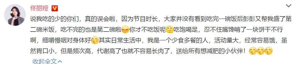 就在大家盯着佟丽娅到底吃几碗米饭时,她本尊却在微博上辟了谣,顺便还揭开女明星维持好身材的关键: