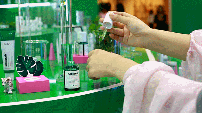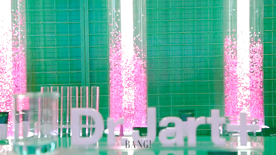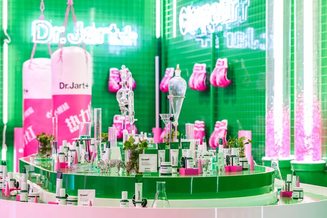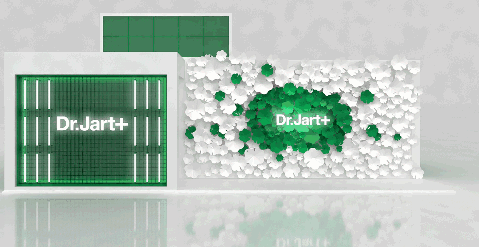如果要用一个词来概括,我会用它们的英文名“Dr.Jart+”,因为它的含义就是“Doctor Join Art”,足以解释这是一个将皮肤医学与护肤艺术完美融合的品牌~门口数百朵积雪草汇集成的logo墙不仅创意满满更是绝佳的拍照背景板。