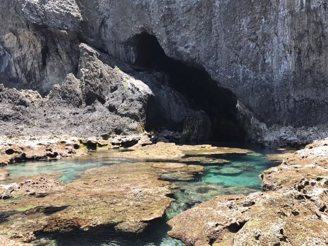 潜水完后,Alana前往探索绿岛的秘境-使用咕咾石建造的房子和美丽的蓝色海湾。抵达蓝色海湾之前,必须先通过瀑布的试炼,爬上海湾。经历的瀑布的试炼和艰难的路程,终于抵达到美丽的令人屏息的蓝色海湾。最后,Alana尝试了另一个绿岛传统美食-海草冰,由贝壳与水果装点而成。