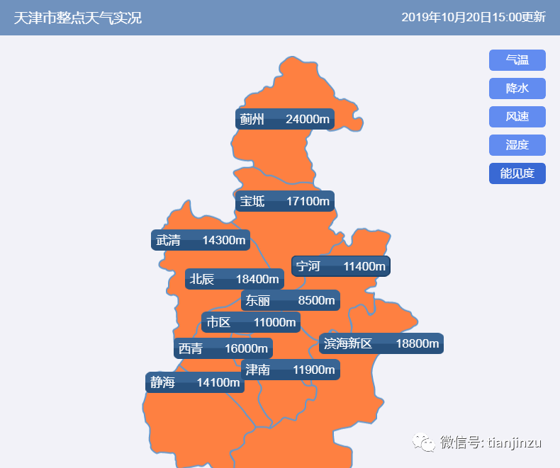 昨天15点,全市各区能见度基本在10公里以上