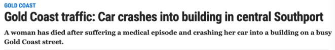 黄金海岸70多岁的一名老人撞上路边花坛,不幸死亡!