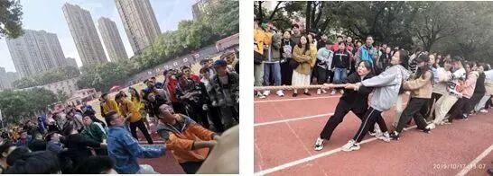 那坚劲有力的拔河队,他们使出了全力去拔倒对方。
