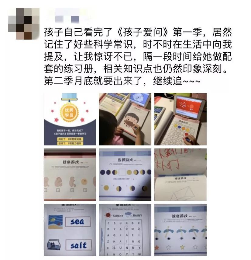 反馈最多的,除了孩子对「孩子爱问」的“疯狂追剧”般喜爱,就是孩子们总会在生活中冷不丁的抛出已经消化的“知识点”给家人朋友科普,让大家惊讶不已。