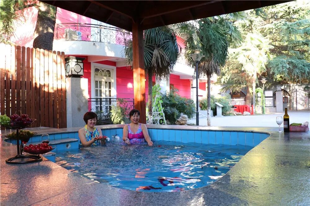 (三)客房服务园区民宿式客房 213间客房,511个床位,包括:南人家-关中榻式客房,滈水别居-窑洞客房,客栈区-林间客房,山庄区—私属汤池客房,景观客房—惠宾楼、迎宾楼,东山客房—森林小木屋等特色客房。园区种植上百种奇花名木,绿化覆盖率达70%,处处花团锦簇,小桥流水,绿树荫荫,被称为“天然氧吧”。