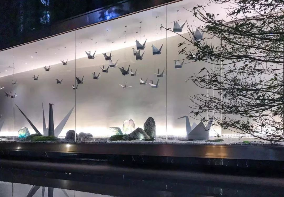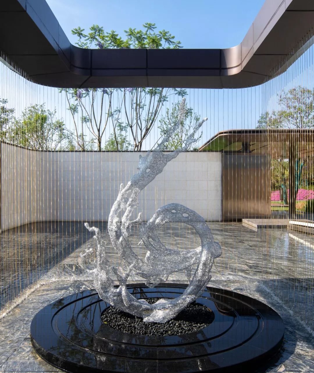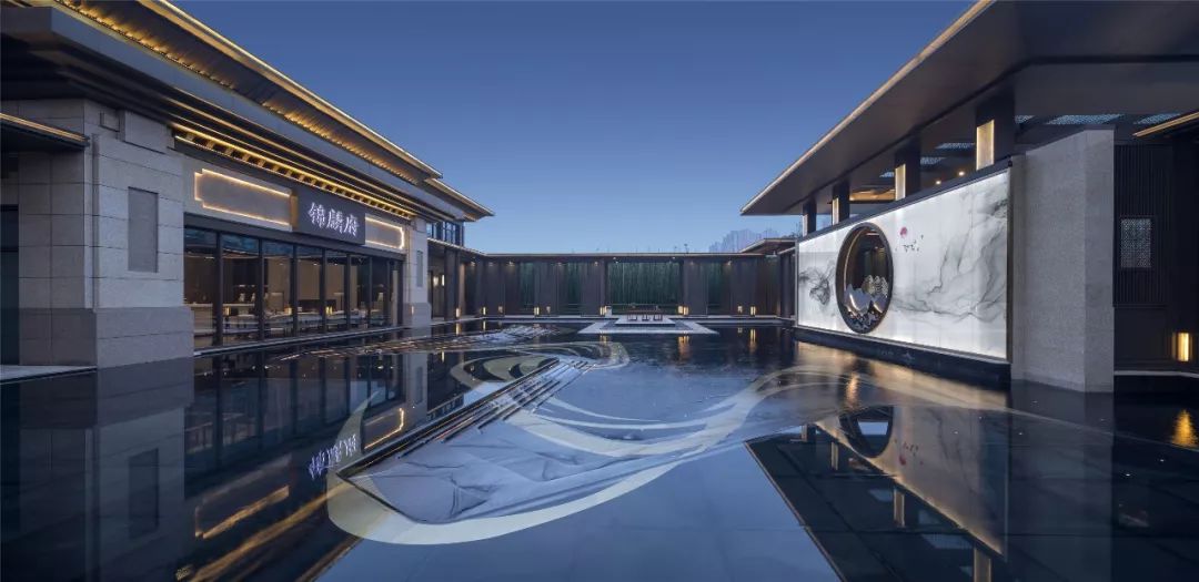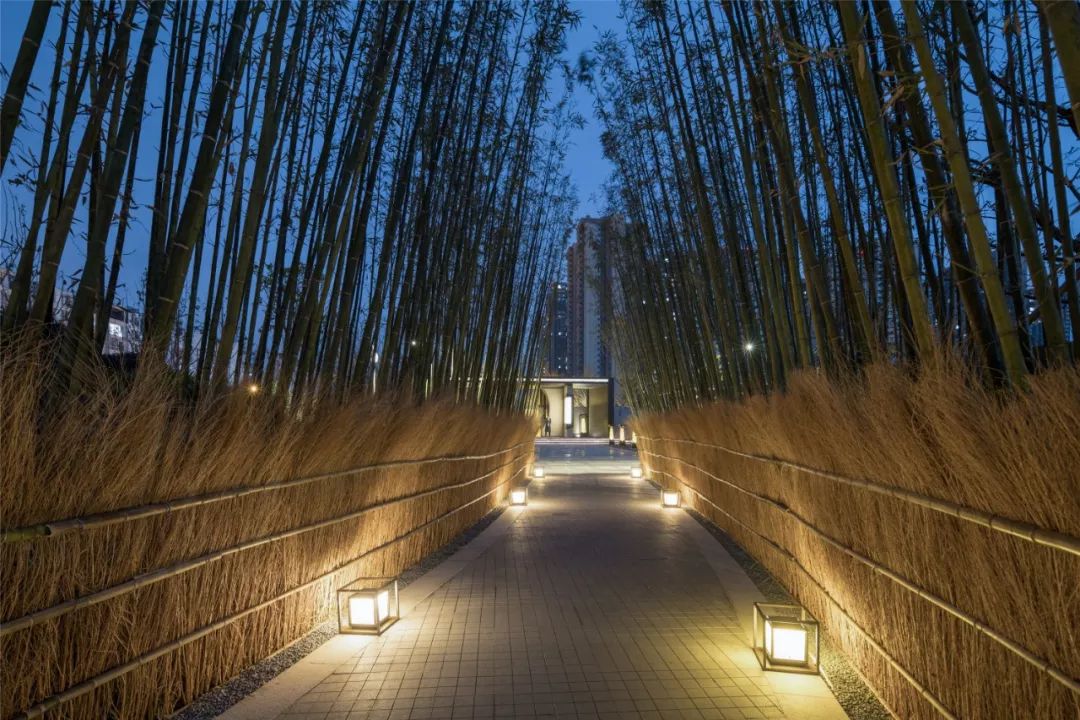 设计从当地禅道文化出发,以“循道天然”的文化理念为根,朴雅自然的设计风格为道,打造“五间十景”的四进景观格局:一重山门、二重中门、三重园门、临湖而居。入口设计灵感来源于川西地区的峡谷与山涧,气势恢宏,山石林立、悬瀑如虹,仿若一个秘境的入口,为我们打开一个充满惊喜的世外桃源之旅。