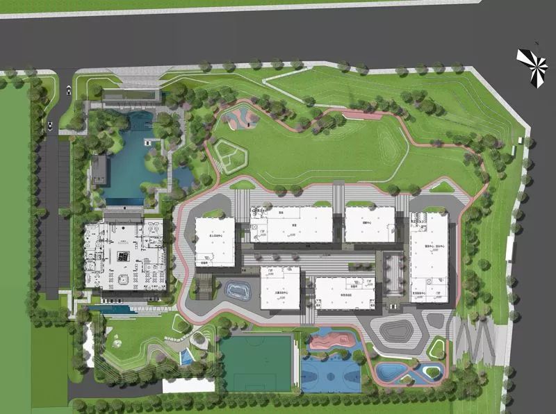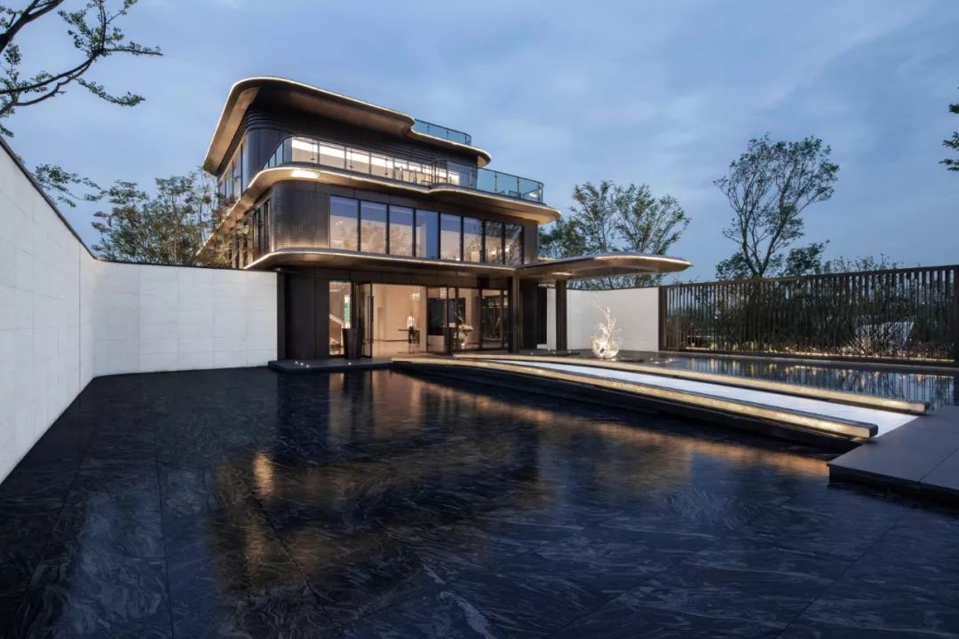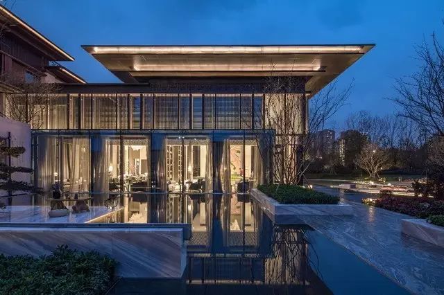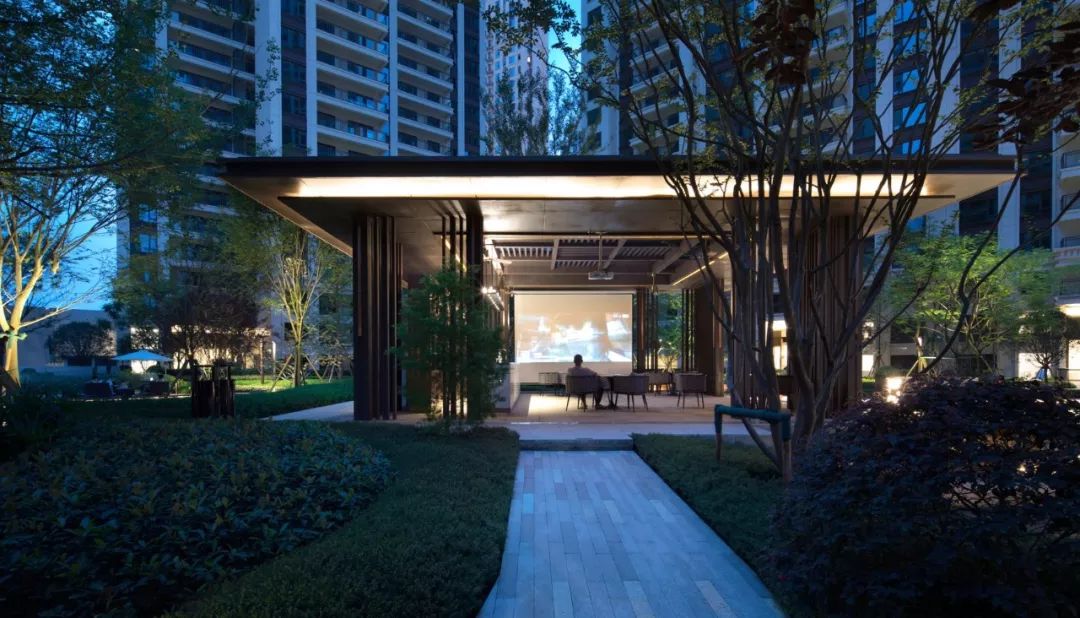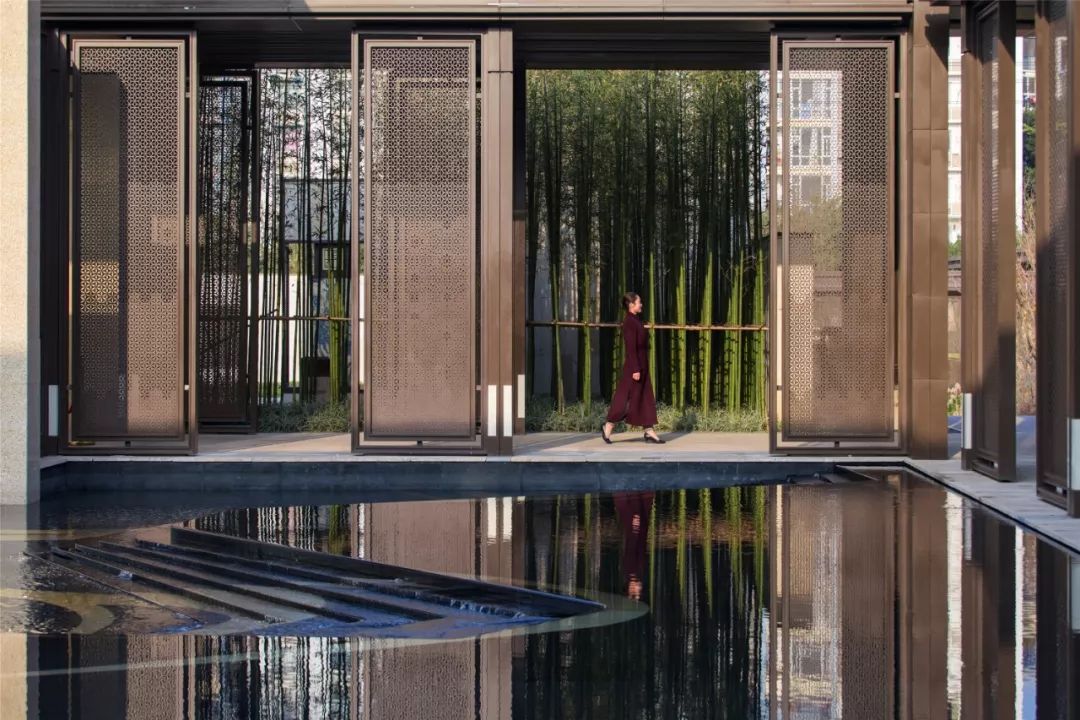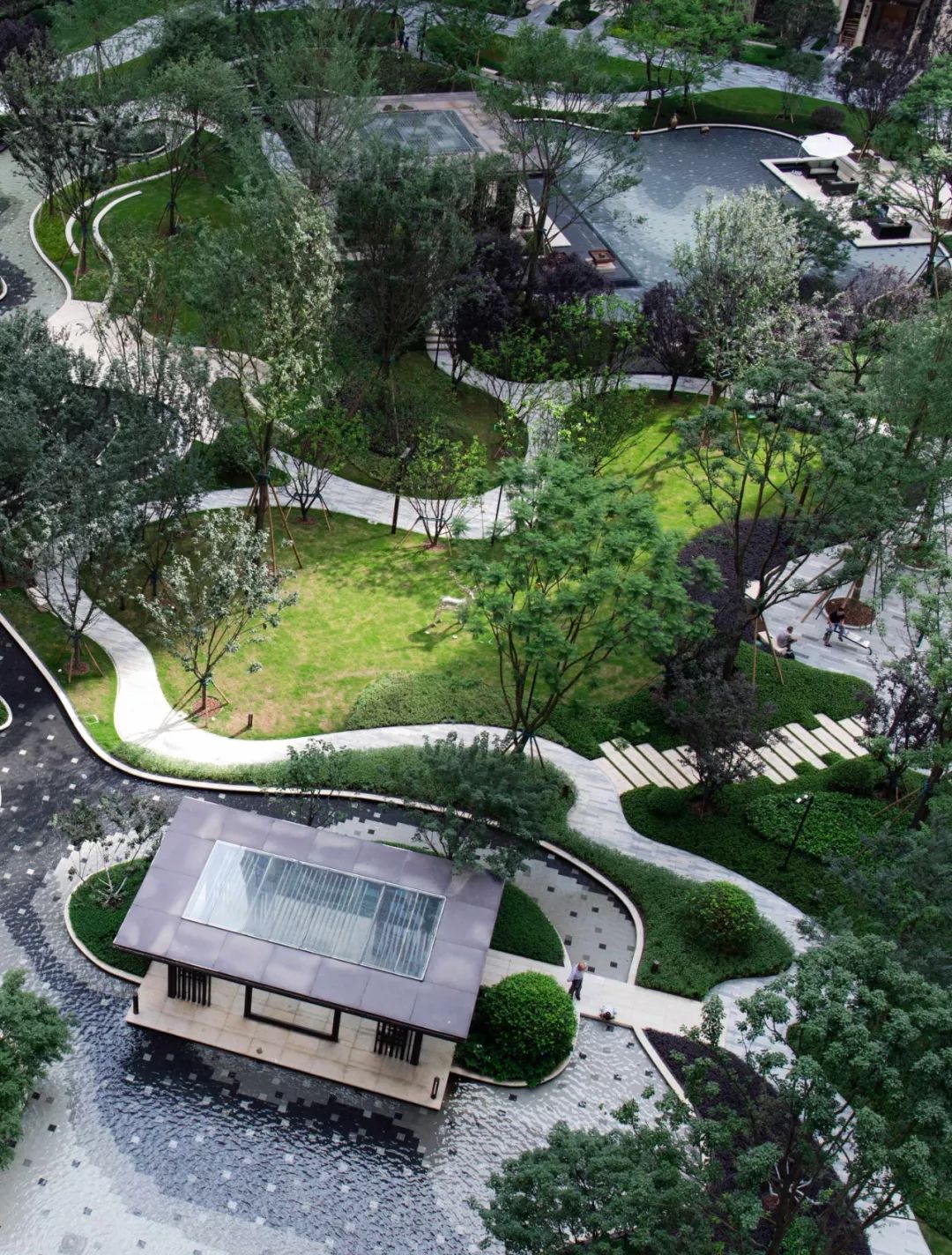 设计从多维度思考出发,以府院的规制打造拥有自然生态的美景,也不失多元生活场所。“一府双园”即东西并行两个规格基本相同的院落,西区以诗情入府景,花木相生:东区以游趣筑乐苑,源山涉水,步移景异。