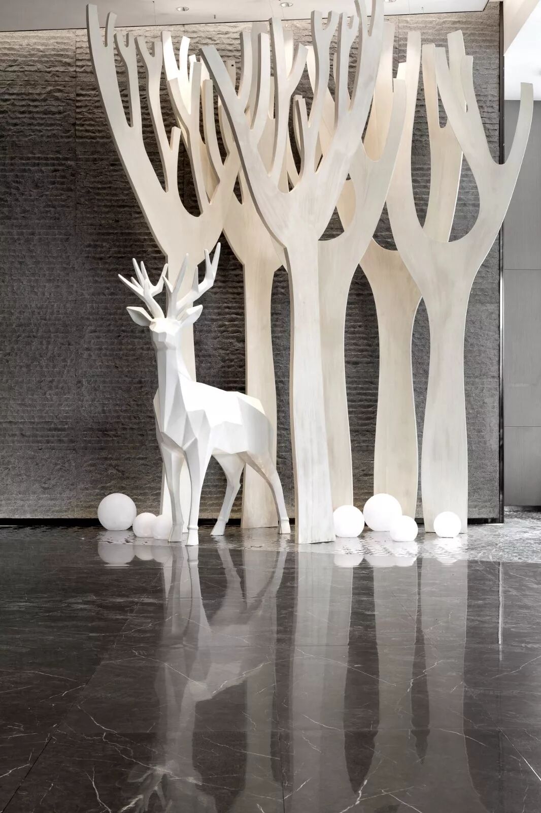 售楼处室内设计以“万物为邻,城市再生”为主题,独具匠心打造“灵鹿”这一IP角色,贯穿售楼处空间。使空间与自然和谐共生,望得见山,看得见水,以令人惊叹的视觉享受,为空间增添灵动活力与优雅风致。