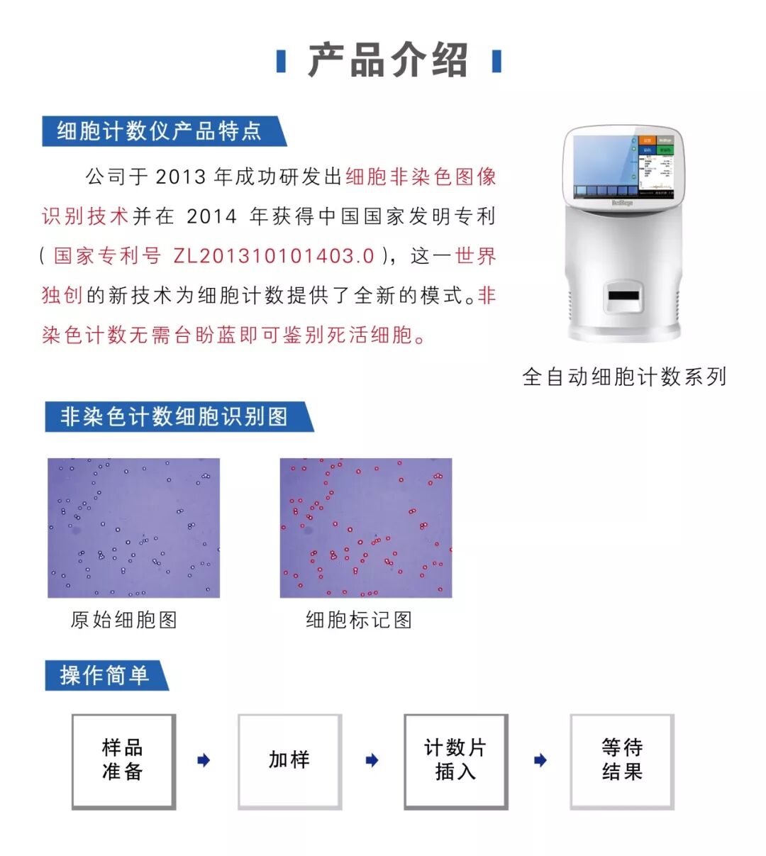 1、世界首创的非染色发明专利,没有台盼蓝染色也可计细胞死活。