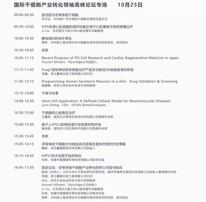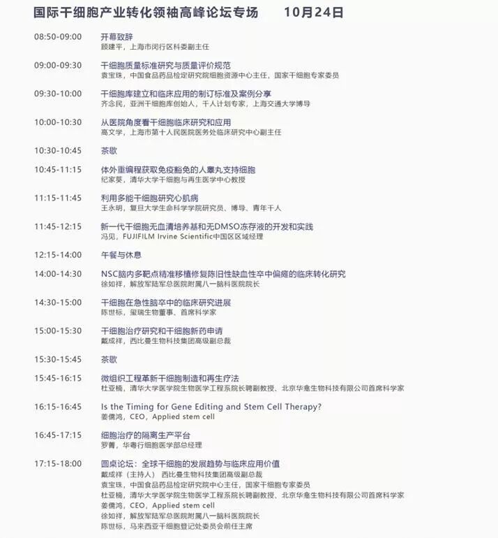 会议日程丨2019国际干细胞产业转化领袖高峰论坛