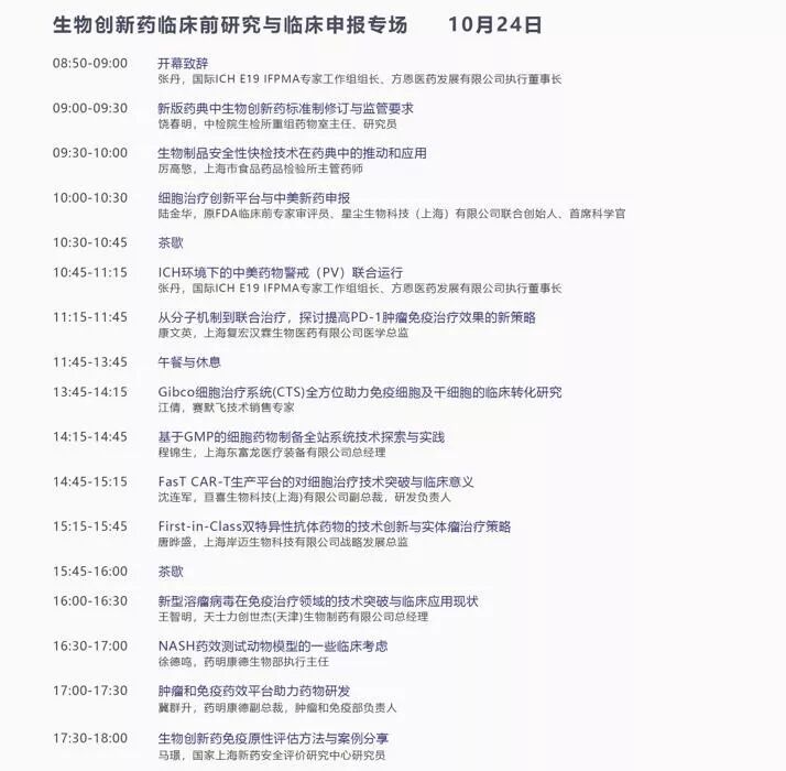 会议日程丨2019第二届生物创新药临床前研究与临床申报上海峰会