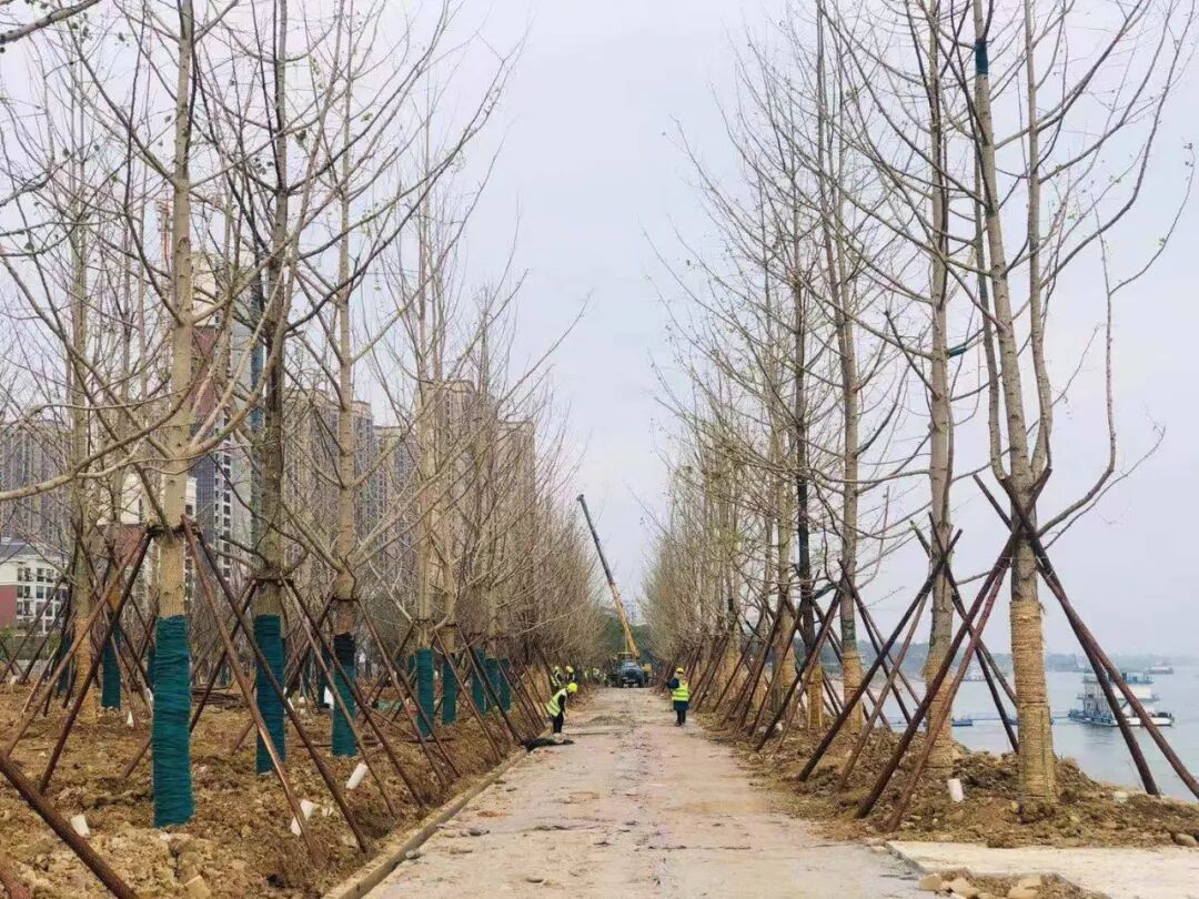 以江为轴,滨江线将一城美景揽入怀中。在公园建设中, 既有尊崇自然的合理设计,也将精细化施工理念始终贯穿整个过程。景观树的间距、支撑杆的固定,排水沟与步道设计等小细节,处处都有大讲究。