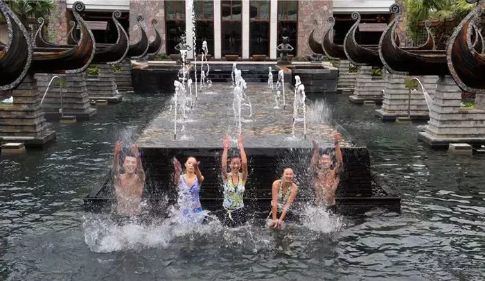 以喷泉为中心,泰式船、异国风情的亭台楼阁为主要景观,共设有“脚底针穴、腰部冲击、肩背部水力冲击、椅型水疗、水中磁力疗法”等十多种水疗项目为一体的综合型水疗SPA区,结合温泉水矿物质的特效,给身心带来彻底的放松!
