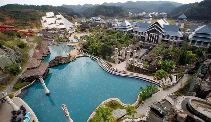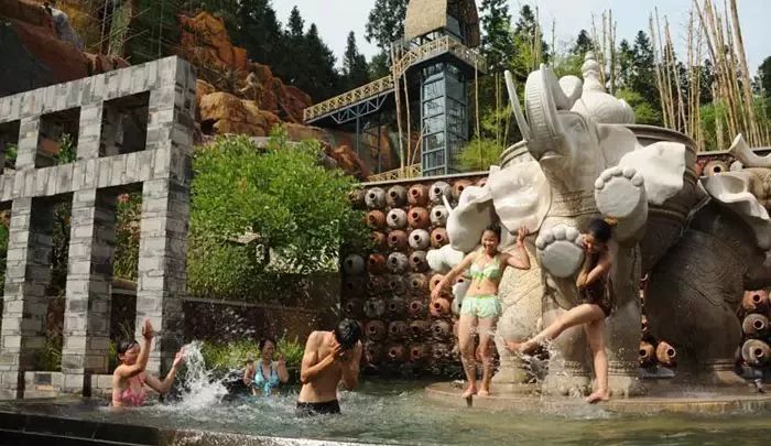 温泉主题公园占地60000平方米,划分为SPA水疗区、溶洞五行温泉区 、美人五润养颜区、五味中药养生区、水上乐园及石板特色温泉区 ,还有古城堡泳池区六大区域。