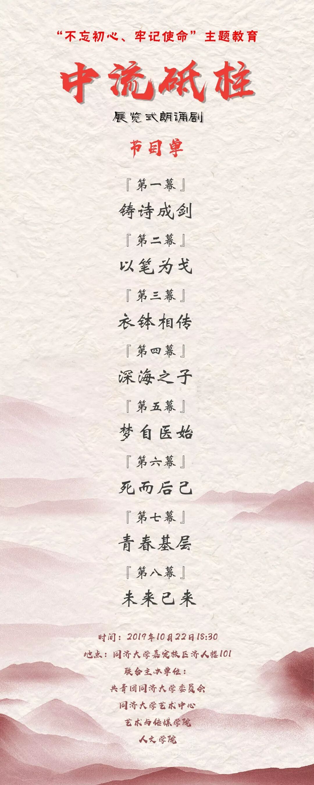 为深入开展“不忘初心、牢记使命”主题教育,学校旨在用艺术的形式彰显与弘扬在新时代的征程中,艰苦奋斗、攻坚克难,为实现中华民族伟大复兴的中国梦注入不竭动力的同济榜样力量,真正把“初心”和“使命”融入到发展的全过程,贯穿到各个环节,覆盖到各个方面。