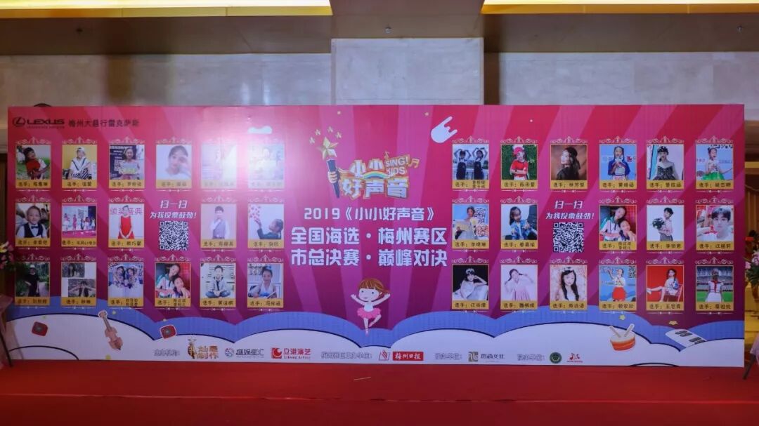 2019《小小好声音》全国海选粤东梅州赛区总共报名人数达两百多人,总共举办了十多场比赛,本次总决赛晋级至粤东总决赛的选手1人,晋级至粤东半决赛的选手12名。