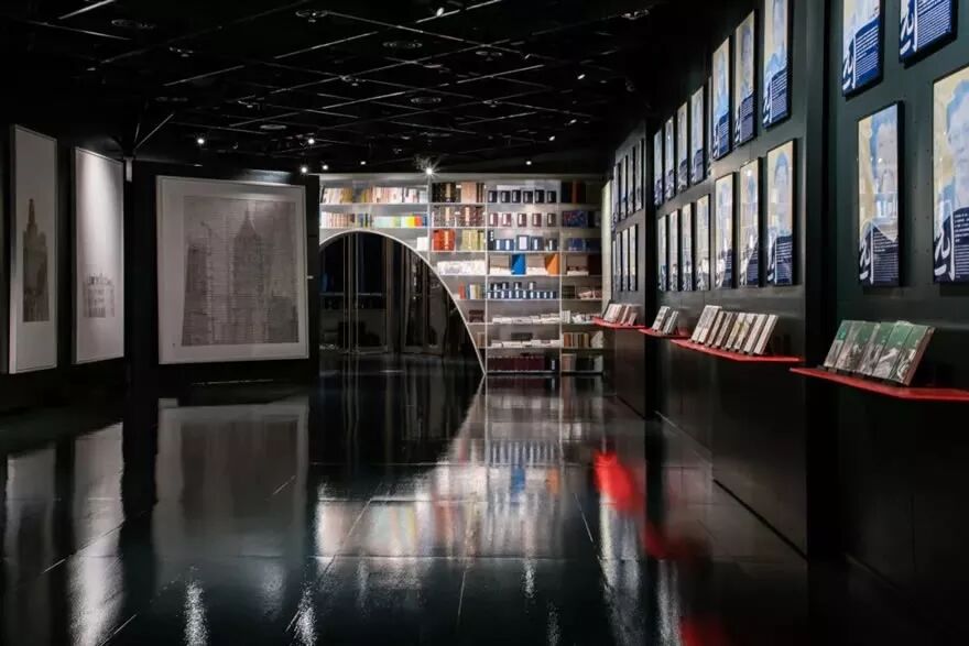 店内两侧高 6 米长 50 米的书墙直抵屋顶,搭配柔和的灯光,十足的视觉冲击力。