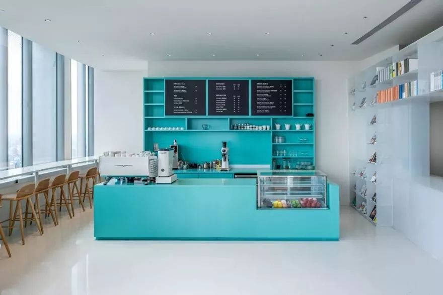 游离于黑白「山水 ? 秘境」之外,Tiffany 蓝精品咖啡屋与少女粉甜品屋,分别隐于书院的起点和终点。