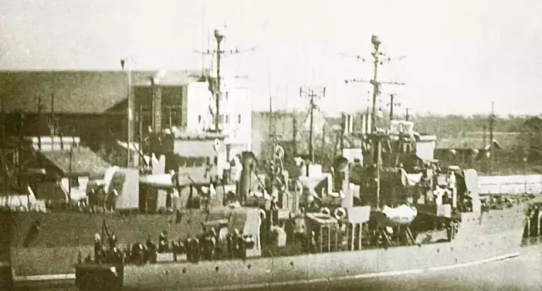 另一艘择捉级就比较“显赫”了,不过严格来讲并不是赔偿舰——这艘择捉级原名“满珠”号,1943年11月由玉野造船所制造完成,1945年4月3日在香港遭美军空袭后损毁座沉,战后被打捞起来拖到广州,但国民党政府忙于内战无力修复,这艘小军舰就这样呆在黄浦港无人问津。