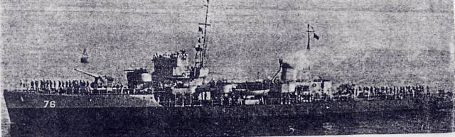 雪风号就在马上校抽中的一组中,当时被暂定为“接1”号舰,于1947年7月3日在中国军官的监督下,由原日本海军舰员操作,从佐世保出发抵达上海,成为后来的“丹阳”号。