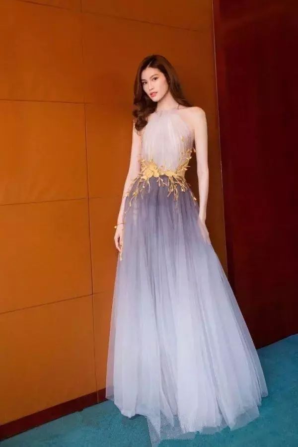 看看何穗的衣品造型,其实都蛮有气质的。高挑的身材,很容易驾驭这一袭渐变色的薄纱吊带长裙,仙气十足,美得发光。