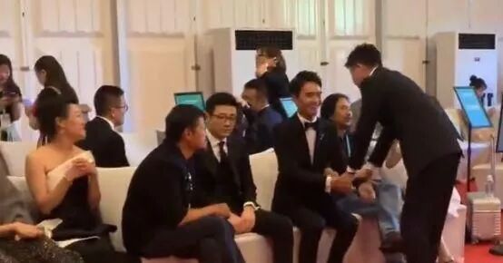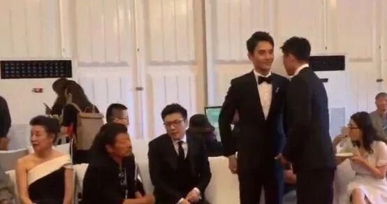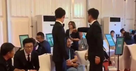 可能是很长时间没见,两人相谈甚欢,在嘈杂的环境下,两人还贴耳低语,可见关系真的很亲密呢。