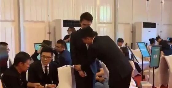 谈完后,刘奕君扶着王凯让他坐下,而王凯似乎是看到刘奕君没有座位也坚持不肯坐。