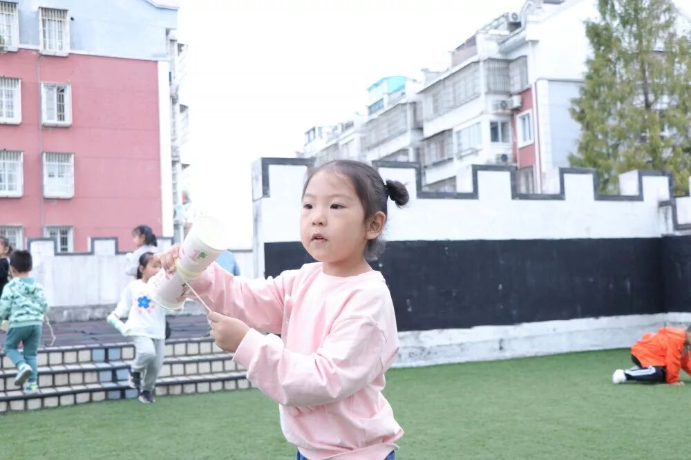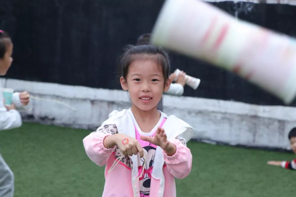 纸飞机制作完成后,孩子们在何爸爸的带领下迫不及待地来到操场上放飞自己亲手制作的纸杯飞机。