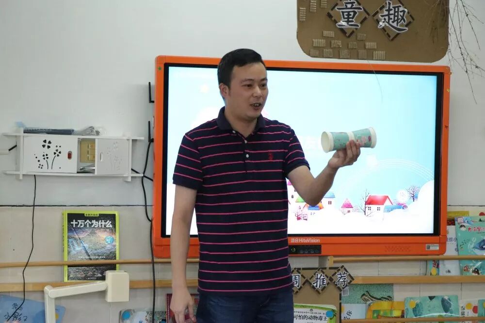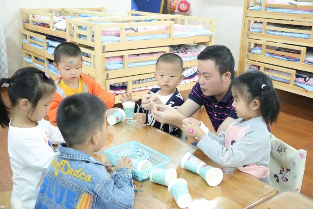 紧接着何爸爸向孩子们介绍了纸杯飞机的材料以及制作方法。