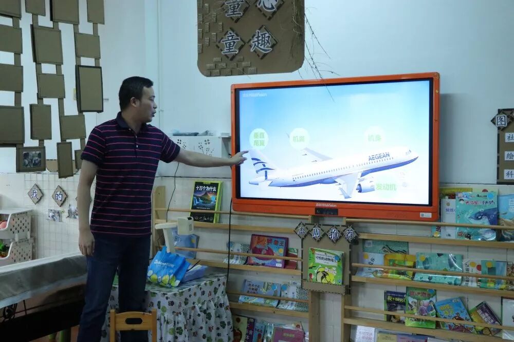 接下来何爸爸带领孩子们认识了几种常见的飞机,如客机、战斗机、直升机等.....通过介绍飞机的基本结构,了解飞机由机身、机翼、发动机、垂直尾翼、水平尾翼组成的。