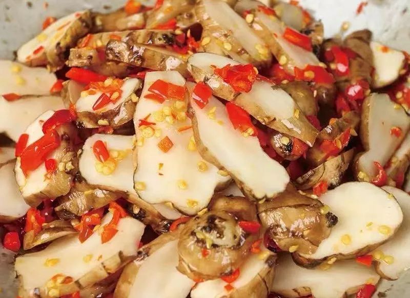 将菊芋洗净、切块,放入容器中,适量加入糖、盐、花椒、醋等调料,腌制1周即可食用。腌制后的菊芋可以作为每餐的配菜,每天拿出来吃几块。