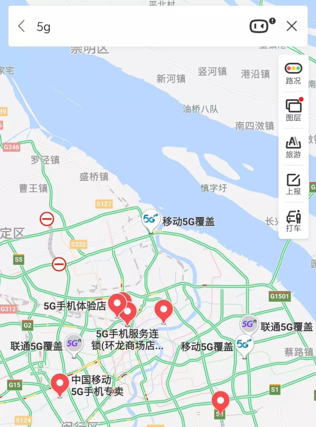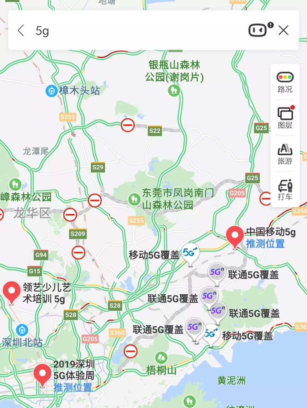 就能查询到你所在的位置是否有移动的5G信号,APP的呈现效果跟网页版类似。