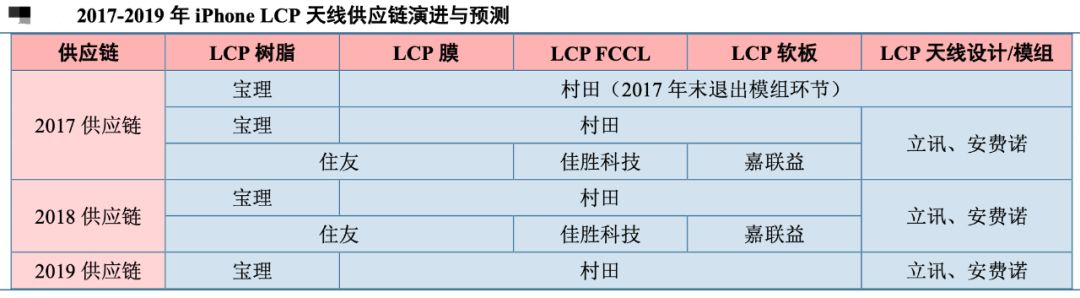 苹果 LCP 天线起初为日本村田制造所独家供应,其后因村田产能和良率未达预期,苹果紧急引入嘉联益(日本供应商)、立讯精密(国内)等。由于 LCP 天线供应商较少,苹果缺乏议价能力。