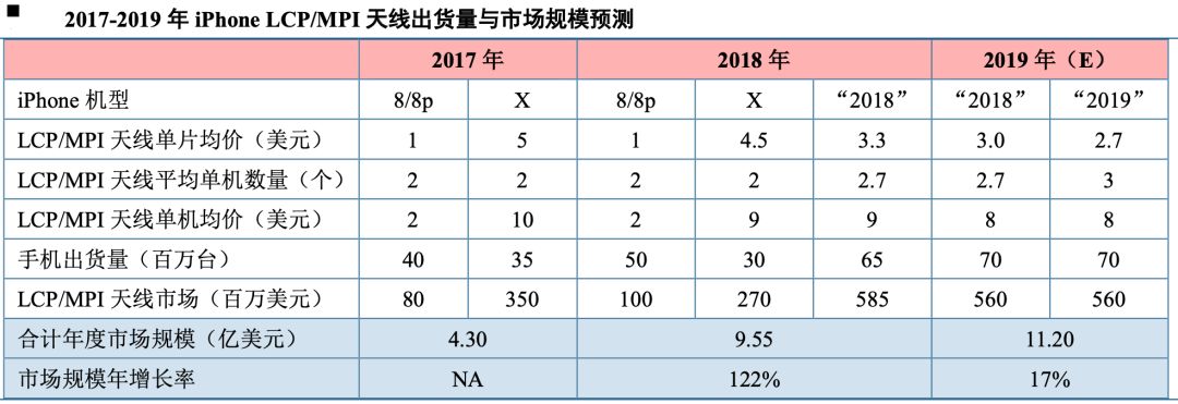 2017年iPhone X上首度规模应用LCP天线和LCP软板,为了提高天线的高频性能并减小空间占用。当时,LCP天线单机价值约为10美元,而 iPhone 7 的独立PI天线单机价值约为0.4美元,从PI天线到LCP天线单机价值提升约25倍。