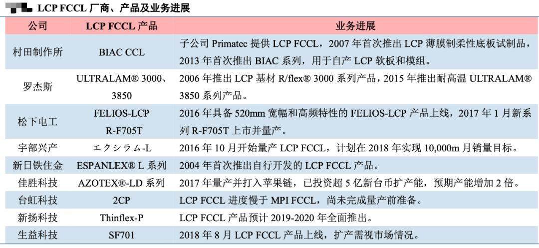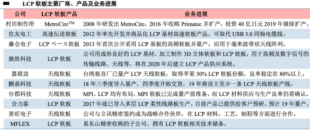 LCP软板仍由日台厂商主导。