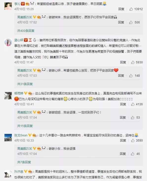另外还有很多明星和名人也留言声援,都是站在周美毅这边,希望孩子能够早日回到母亲身边,也希望孩子好好的,周美毅要坚强。