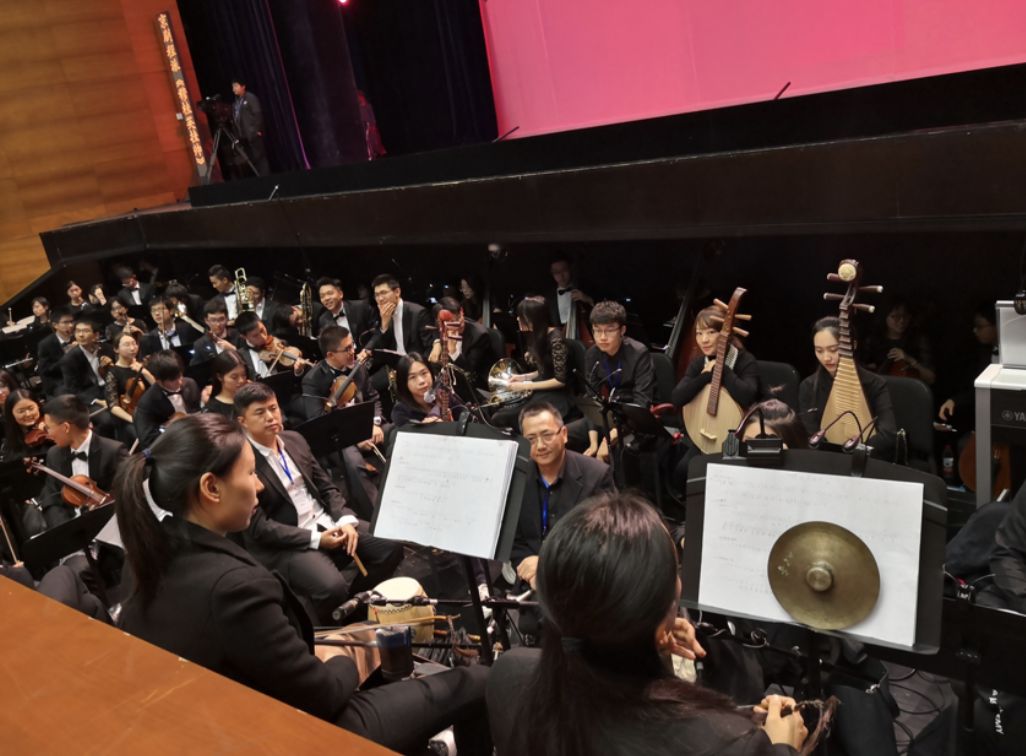 到达北京当天,全体乐队成员就开始连夜和清华大学交响乐团和合唱团进行合乐排练,仅经过一次排练,第二天就上台演出,显示了高度的职业素养和拼搏精神。由于两天演出分属不同的剧场,所有舞台装置均由舞美和学生志愿者通宵装台、卸台,体现了上戏师生高度的集体荣誉感。同时在整个演出中彰显了“凝心聚力、牢记使命”的上戏精神。