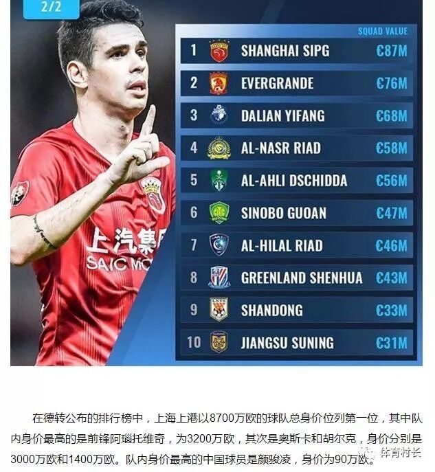 根据最近几期的中超球员身价信息来看,奥斯卡是涨幅最大的,现在最新身价是3000万欧,而两年前的时候,奥斯卡由于刚来中超不久,实际身价一度下跌到了2200万欧。要知道当时奥斯卡以6000万欧元的转会费加盟上海上港,成为中超新标王,也一度受到了外界的质疑。