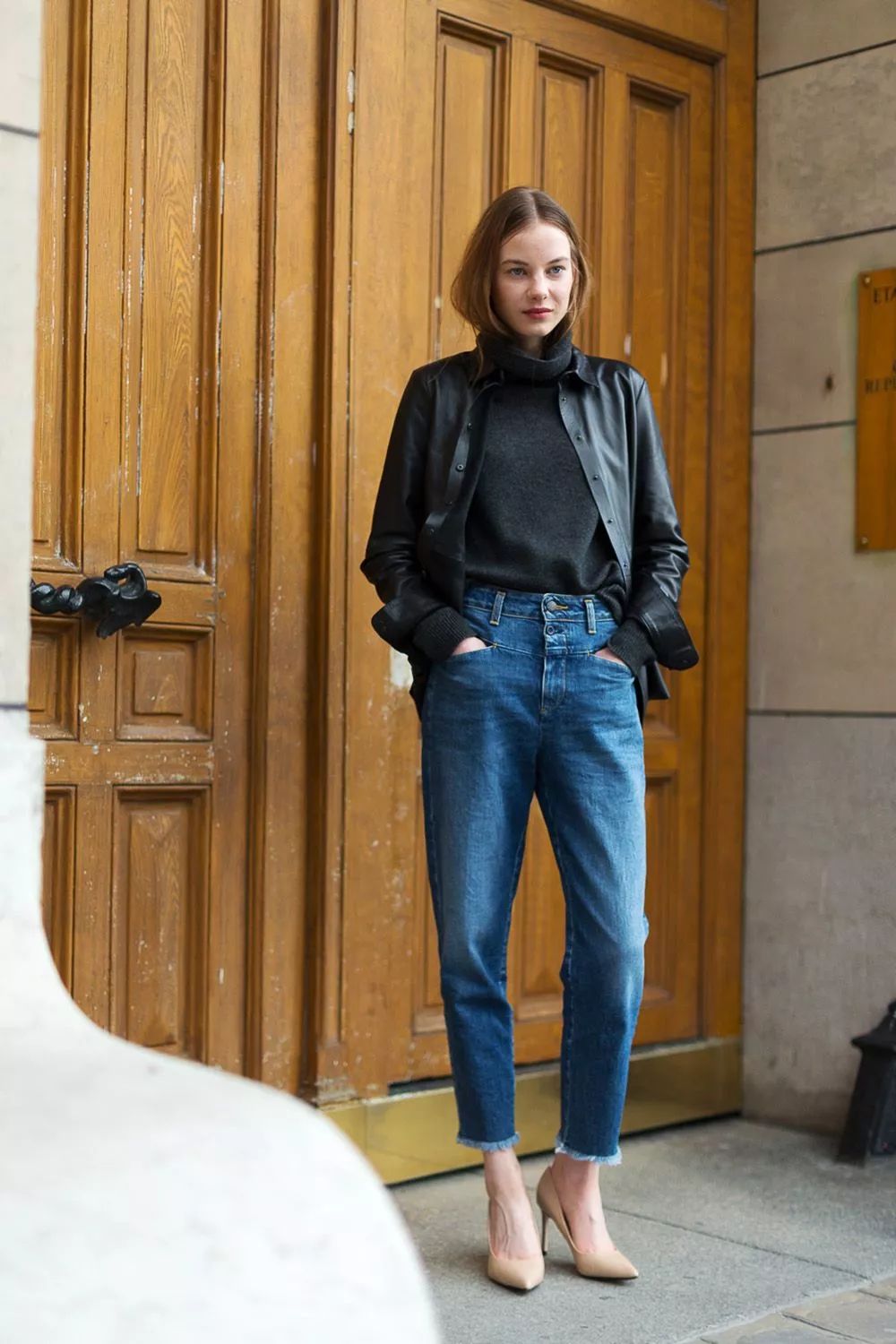小高领+夹克的搭配,能够给你可盐可甜的气质!风格超级百变!