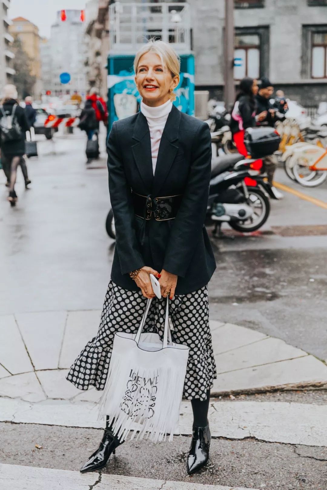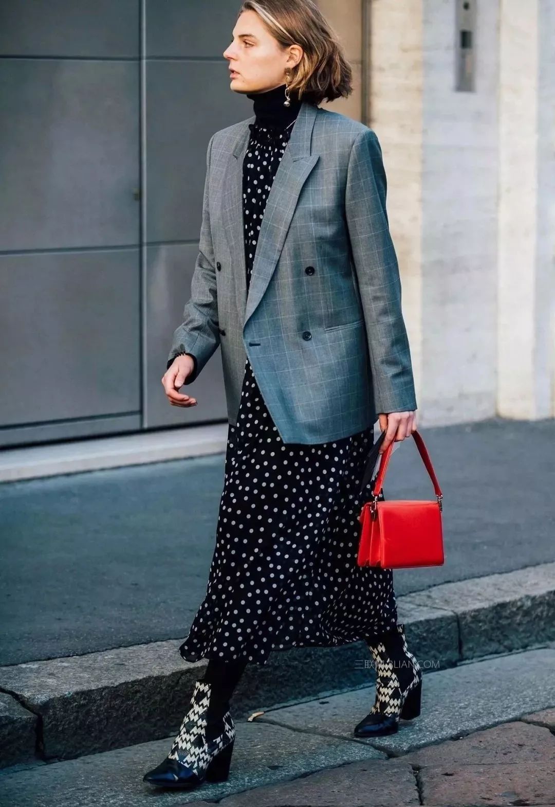 或是配一条浪漫又复古的波点裙,走在街角,简直将法式的名伶味道展现的淋漓尽致!