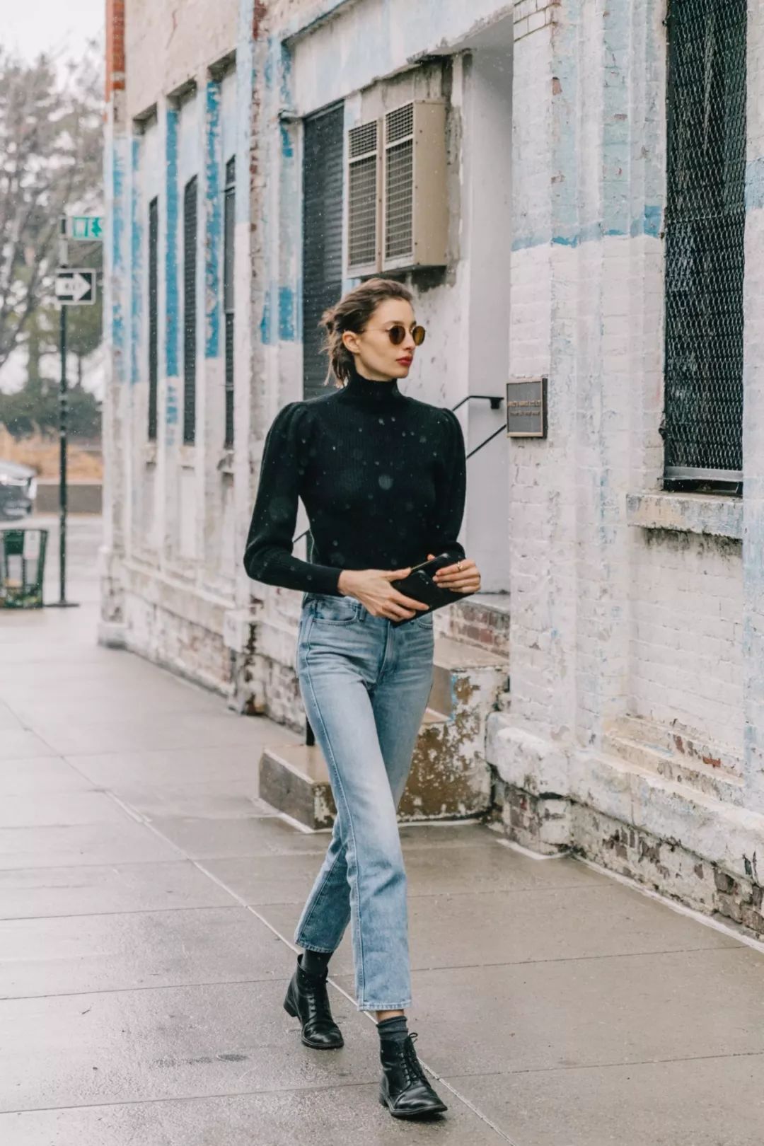 机车风皮夹克+黑色烟管领,是cool girl们一定要尝试一下的组合!