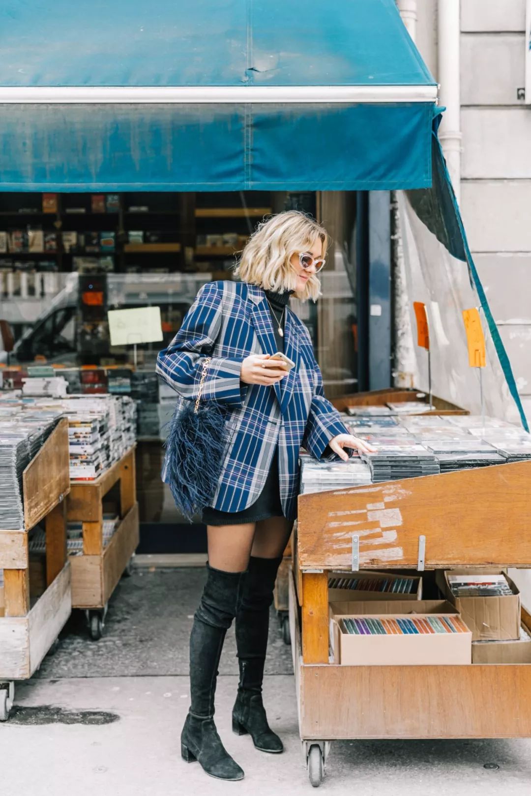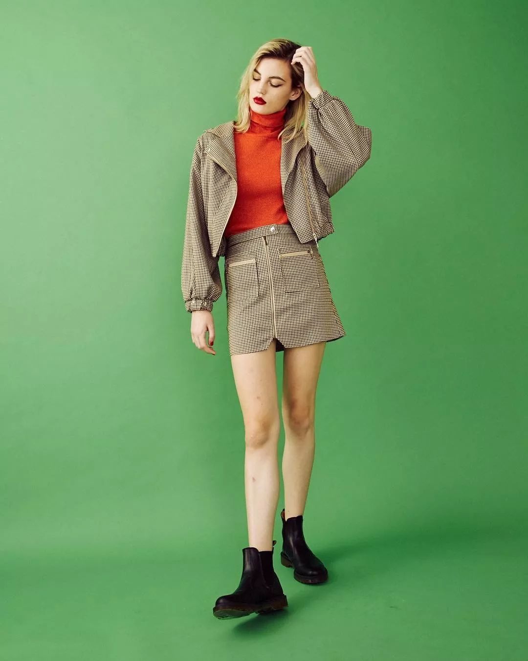 格纹短夹克非常经典,搭配A字裙美艳又帅气逼人,特别适合腿部线条较为纤细的女生!