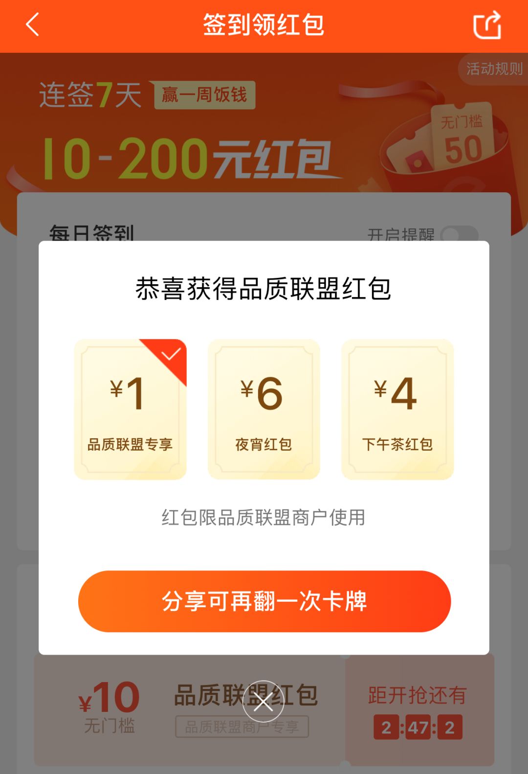 饿了么签到翻牌领红包