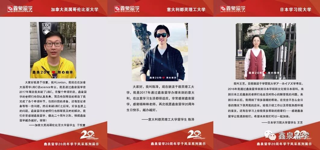 鑫泉留学20周年学子风采