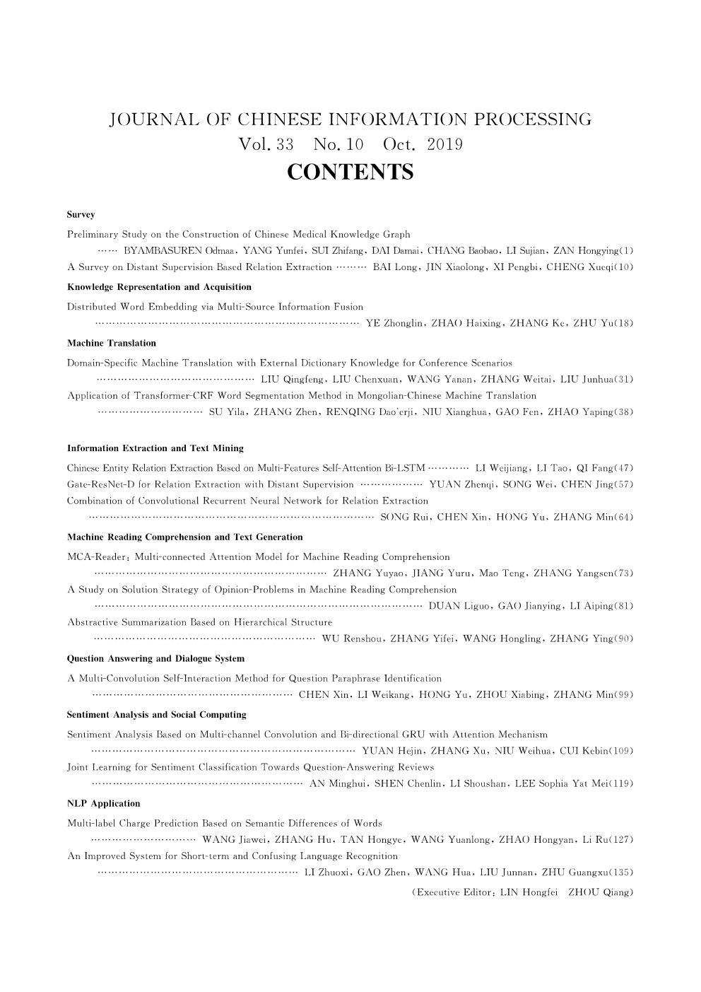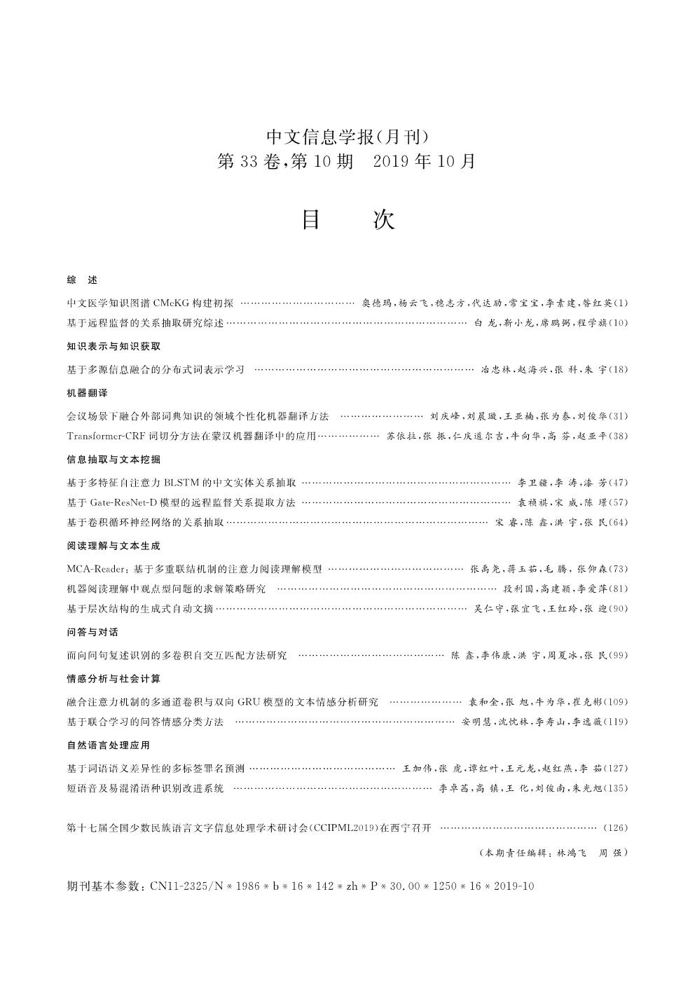 引用格式:李卫疆,李涛,漆芳. 基于多特征自注意力BLSTM的中文实体关系抽取[J]. 中文信息学报, 2019, 33(10): 47-56,72. LI Weijiang, LI Tao, QI Fang. Chinese Entity Relation Extraction Based>[J].Journal of Chinese Information Processing,2019, 33(10): 47-56,72.